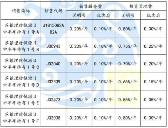 ? 為回饋客戶,管理人自 2023 年 10 月1 日起,對“蘇銀理財恒源融盈 1 號半年持有”理財產品的銷售服務費率、投資管理費率給予優惠,具體安排如下: