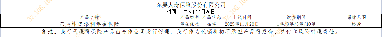 代銷東吳人壽保險股份有限公司產品披露